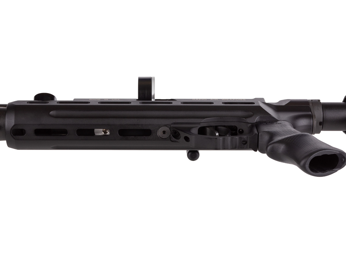 Rapid Air Worx mewakili senapan angin buatan Amerika terbaik. Memanfaatkan barel poligonal Lothar Walther kelas atas, regulator yang konsisten, pemicu tingkat kecocokan, dan komponen serat karbon, RAW Chassis adalah yang terbaik yang ditawarkan Amerika. Pemicu dua tahap pecah sekitar 6 ons dari pabrik tetapi dapat disetel lebih ringan dan masih mempertahankan dinding tahap kedua yang sangat tajam yang pecah seperti kaca. Chassis menampilkan antarmuka M-LOK di tiga sisi, yang membantu menjaga bobot tetap rendah dan profilnya ramping, memungkinkan banyak ruang untuk memasang aksesori.